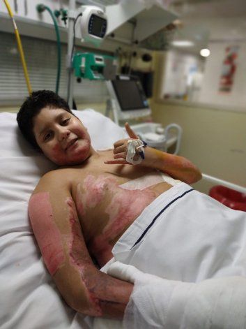 "Se prendió fuego desde los pies hasta el mentón", contó angustiada la madre. Solo la espalda del niño quedó sin quemarse, el resto sufrió lesiones de tipo B, dejando los músculos al descubierto. Rápidamente lo trasladaron al Hospital de Villa Regina, donde lo derivaron a la terapia intensiva de General Roca, que en épocas de Covid funciona en Allen.