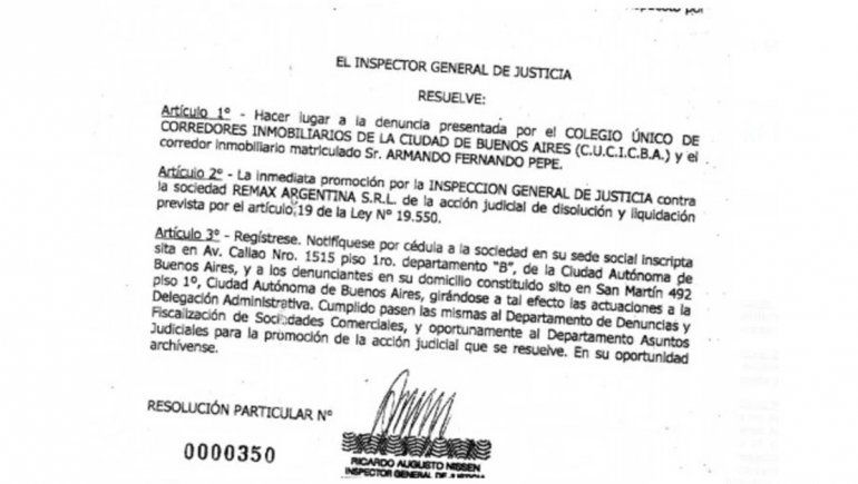 Este martes, la franquicia inmobiliaria RE/MAX sufrió un duro revés y la Inspección General de Justicia(IGJ) ordenó su liquidación y posterior disolución, tras una denuncia presentada por el Colegio Único de Corredores Inmobiliarios de la Ciudad de Buenos Aires (Cuciba). La IGJ, que se encarga de registrar y fiscalizar sociedades comerciales, adelantó parte de su fallo que se conocerá oficialmente el miércoles.