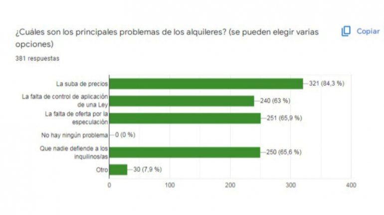 Yendo a los números, al 45% de los inquilinos le siguieron aumento el alquiler cada seis meses, un 22,8% afirmó que le hicieron firmar contratos por menos de tres años, en tanto que otro 24,1% señala que no tiene un contrato firmado (por lo que está todo el tiempo a la expectativa que lo echen y el Estado no tiene control sobre el mismo).