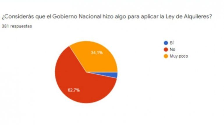 A la luz de todo lo que está pasando con los bolsillos de la población activa y trabajadora, se observa que el 62,7% de la gente consultadas considera que el gobierno nacional no hizo nada para aplicar la Ley de Alquileres y el 34%, dice que hizo muy poco.