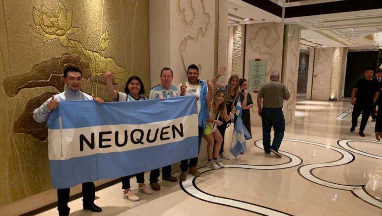 La foto en la puerta del imponente Wukesong Arena, en Beijing, que ilustra este texto puede dar fe. También en las gradas donde Argentina logró la hazaña ante Francia, se hizo notar el estandarte, así como el aliento de estos tres vecinos del Alto Valle que no se perdieron hasta aquí partido del equipo de Sergio Hernández, que marcha invicto y está a un paso del título o al menos sueña con la gloria.