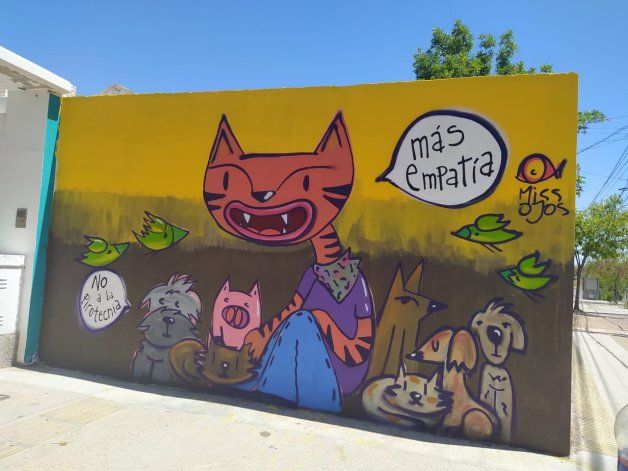 “Muralear para concientizar es una propuesta y acción ciudadana para transformar la realidad de los demás animales concientizando”, describió a LM Neuquén Julia Busqueta, abogada integrante de AFADA.