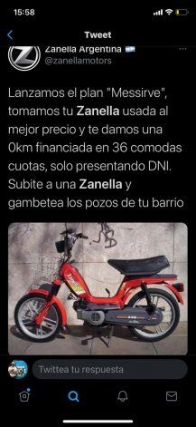 "Nuestras motos te llevan a tocar el cielo con las manos, que estás esperando para adquirir tu Zanella? Solo presentando DNI", publicaron en Instagram rápidos de reflejos.