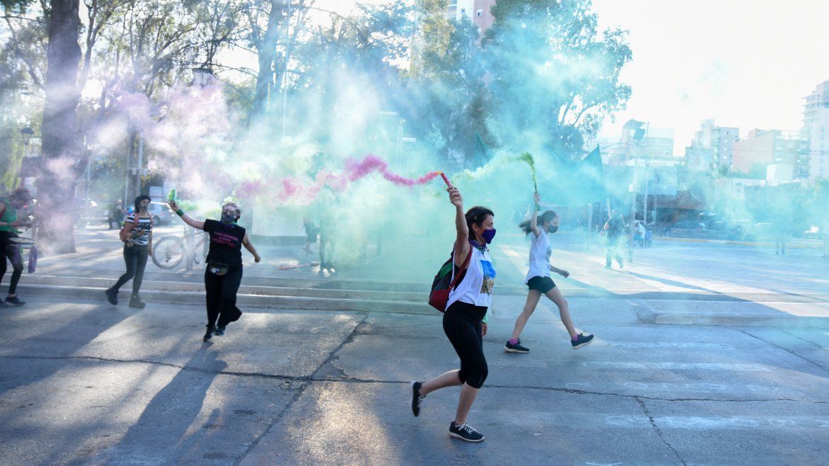 Con tono de festejo, pero "manteniendo la lucha", dejaron nuevas postales de una manifestación en medio de la pandemia, con barbijos y con poca distancia social.