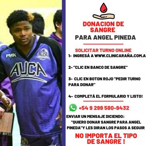 Las muestras de cariño para el joven Ángel Pineda, el jugador de básquet del club Auca Mahuida quien días pasados fue atropellado en Rincón de los Sauces y lucha por su vida, no dejan de sucederse en las redes sociales. El básquet provincial se aunó en torno a la desgracia del simpático alero dominicano recibiendo la palabra de destacadas figuras quienes además de transmitirle “todas las energías y las fuerzas para salir adelante” hicieron un llamado a la solidaridad para ayudar económicamente a su humilde familia en este trance tan duro.