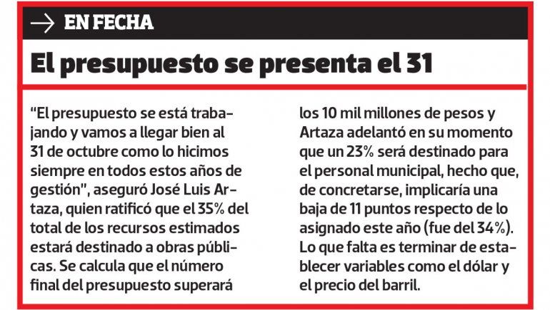 Las obras fueron divididas en tres: las que se están ejecutando y van a continuar, aquellas que se licitarán hasta el 10 de diciembre y las previstas para 2020. “Ahí tendrán que ver ellos (por los funcionarios del nuevo gobierno) si las van a licitar o no, nosotros las tenemos proyectadas y estarán en el presupuesto municipal”, indicó Artaza.