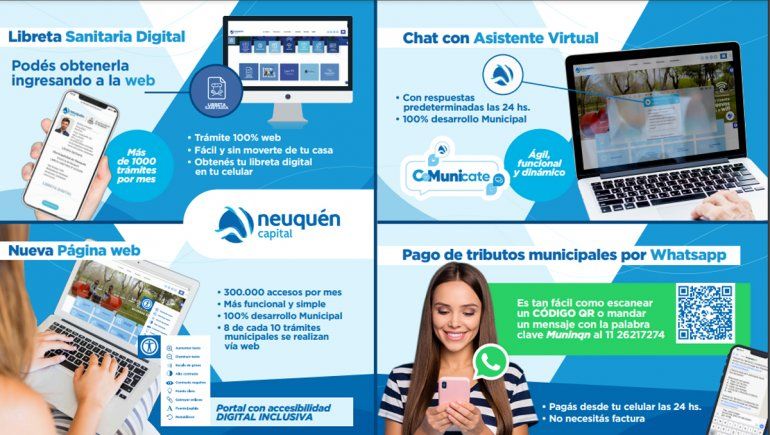 “Podrán pagar tributos municipales vía WhatsApp, que es la red de chateo más importante, a través de la lectura de un código QR y agendar un número (11 26217274) con una palabra clave que es ‘muninqn’. Luego van a acceder a todos los tributos municipales por vencer y podrán pagarlo mediante una tarjeta de débito”, explicó el Secretario de Modernización de la Municipalidad, Javier Labrín, en diálogo con LU5.