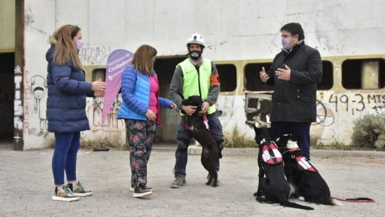 El entrenador de canes Lucas Grego dijo que “si pasa algo en este momento ya contamos con dos perros operativos para ayudar y que se dedican a la búsqueda de personas vivas con venteo, trabajan en estructuras colapsadas y grandes áreas en aludes”, al mismo tiempo que destacó que a los animales se los entrena en base al juego, desarrollando su capacidad olfativa y destreza.