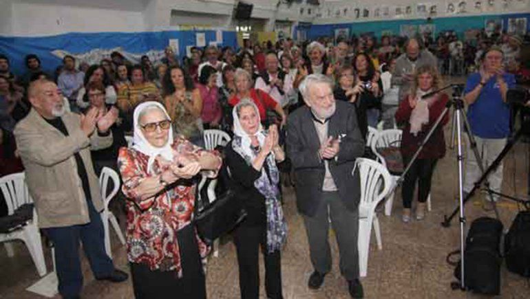 Unos minutos después, el autor del libro “La Patagonia Rebelde” tomó de las manos a esas dos valientes mujeres con sus pañuelos blancos en la cabeza y bailaron al ritmo de una batucada mientras recibían los aplausos de todos los presentes.