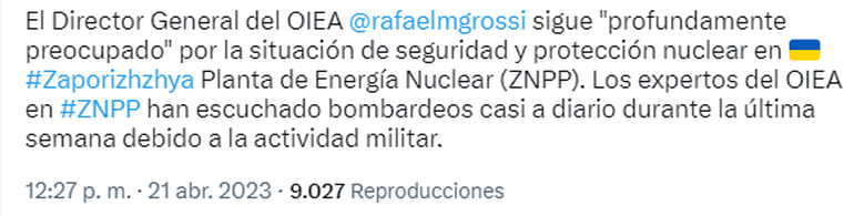 “Vi claros indicios de preparativos militares en la zona cuando visité la central nuclear de Zaporiyia hace poco más de tres semanas. Desde entonces, nuestros expertos en el lugar han informado con frecuencia que oyen detonaciones, que parece haber intensos bombardeos no lejos del lugar. Estoy profundamente alertado por la situación en la central”, señaló el líder de la organización a través de un comunicado oficial.