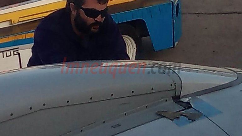 "Pegó al menos dos o tres tiras de cinta sobre un sector próximo a las alas del avión, no sabemos por qué", comentó un lector de LM Neuquén que acercó su inquietud antes de la partida de la aeronave.