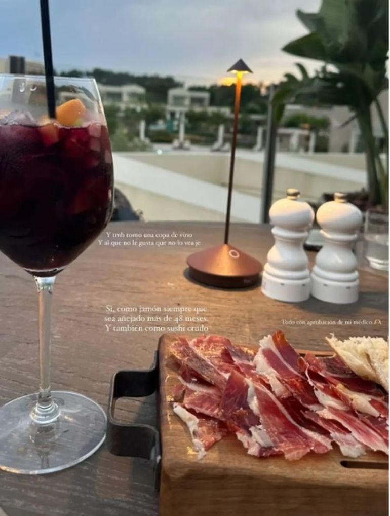 “Sí, como jamón siempre que sea añejado más de 48 meses. Y también como sushi crudo y también tomo una copa de vino. Y al que no le guste, que no lo vea”, tiró algo ofendida por la cantidad de mensajes que había recibido al mostrar su cena.