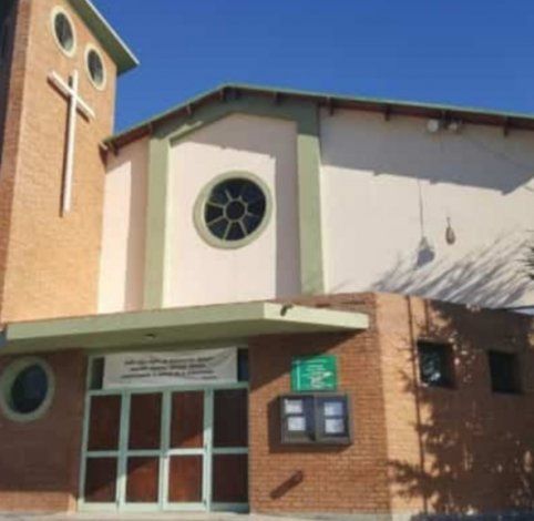La iglesia está ubicada sobre la calle Roca, frente a la plaza San Martín de Cutral Co y parece habitual que los adolescentes utilicen todos sus costados para hacer diferentes piruetas con el skate o en bicicleta.