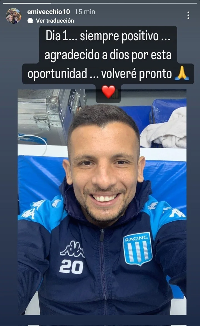 "Día 1. Siempre positivo. Agradezco a Dios esta oportunidad. Volveré pronto", escribió el volante creativo, quien ayer comenzó con los trabajos de recuperación, en su cuenta personal de la red social Instagram.