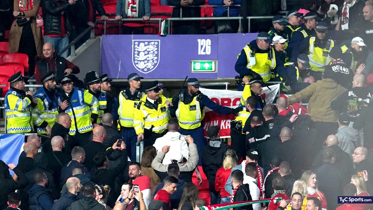 La Policía Metropolitana confirmó el arresto de los fanáticos en su cuenta de Twitter: “Poco después del comienzo del partido de esta noche en Wembley, los oficiales entraron a la tribuna para arrestar a un espectador por un delito de orden público agravado racialmente luego de los comentarios hechos hacia un empleado. Cuando los oficiales hicieron el arresto, estalló un desorden menor que involucró a otros espectadores. El orden se restableció rápidamente y no ha habido más incidentes en esta etapa”.