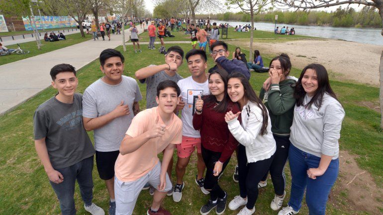 Aunque las principales actividades estaban previstas para la tarde, al mediodía comenzaron a llegar los primeros estudiantes dispuestos a celebrar su día libre de clases. Algunos grupos de jóvenes se encontraban para compartir el almuerzo con antiguos amigos o compañeros del curso a orillas del Limay.
