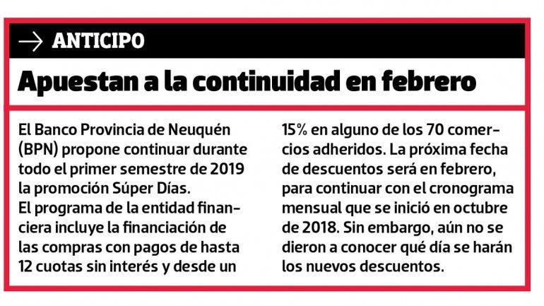 La cuarta edición de los Súper Días del Banco Provincia de Neuquén (BPN) logró reactivar el consumo de fin de mes en los negocios neuquinos, que sufren una retracción de las ventas con respecto al mismo mes del año pasado.