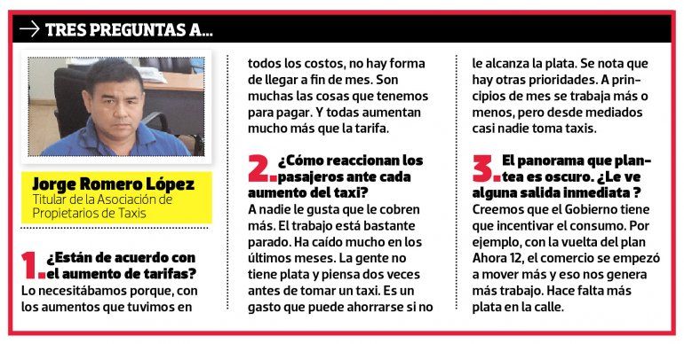 “No podíamos esperar más, además, la ordenanza fija dos aumentos por año y ahora había que dar uno”, consideró en la misma línea el titular de la Asociación de Propietarios de Taxi, Jorge Romero López.