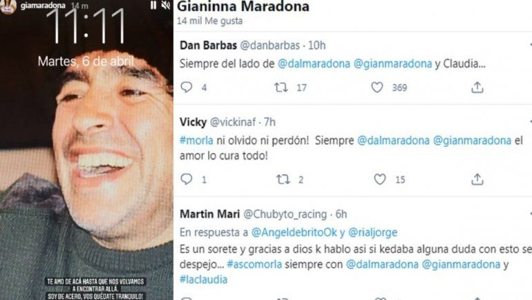 A pesar de no hablar de manera formal ante los medios, Dalma y Gianinna Maradona no se quedaron calladas después de los fuertes dichos de Morla en televisión y le contestaron a través de estratégicos "likes" en los mensajes de apoyo que recibieron.