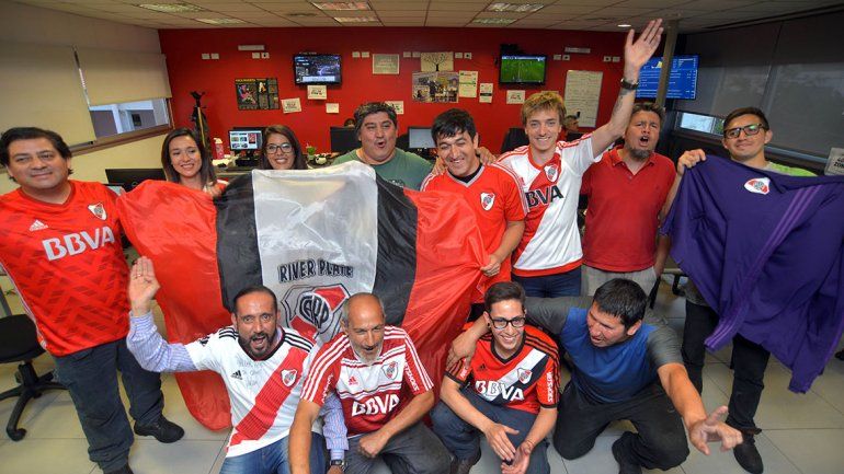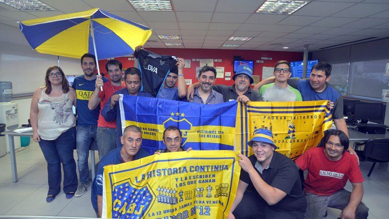 Integrantes del taller y rotativas, de LU5 y de distintas secciones del diario acompañaron la iniciativa para vivir con alegría las últimas horas antes del gran partido. “Dale campeón, dale campeón...”, entonaron ambos. Sólo uno volverá a cantarlo hoy.