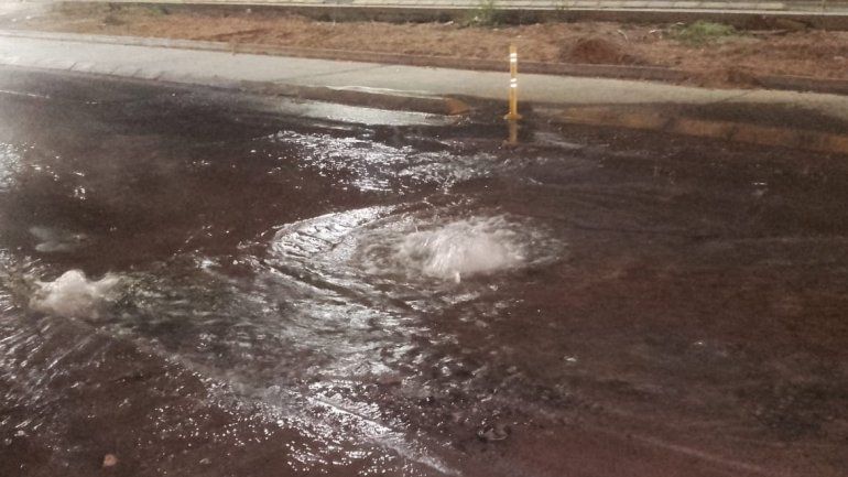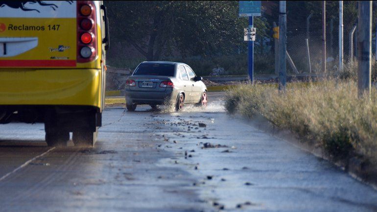 La pérdida de agua no sólo complica al tránsito sobre esa arteria principal para llegar del oeste al centro neuquino sino también alcanza a ingresar en un domicilio en inmediaciones de la esquina de Stefenelli con la Avenida del Trabajador.