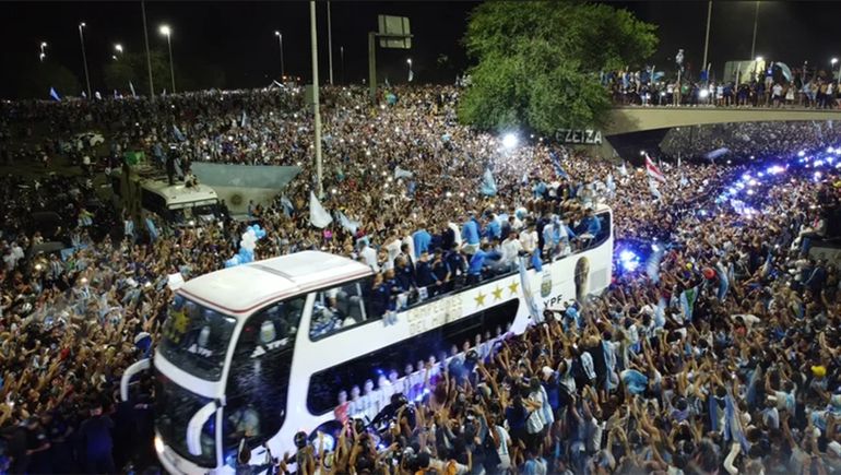 Esta mañana, en medio de una enorme expectativa y el feriado decretado por el Gobierno nacional, el plantel campeón del mundo partirá desde el predio de la AFA hacia la Ciudad de Buenos Aires, con destino principal a la zona del Obelisco porteño, donde el micro descapotable realizará un recorrido para recibir el homenaje y el reconocimiento popular.