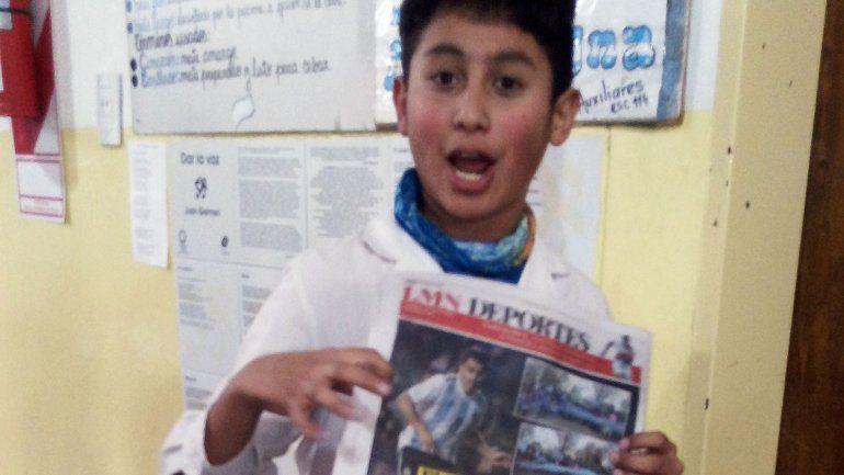 “Chicos, les dije que iba a haber una sorpresa hoy”, dice cuando abre la puerta e invita al equipo de LM Neuquén a ingresar con ella en una suerte de clase abierta sobre el famoso futbolista. “Ellos son de un medio de comunicación y vinieron a hacer una nota, porque ¿quién estudió acá y hoy juega en la Selección?”, pregunta al grupito. “¡El Huevito Acuña!”, responden los chicos con alegría y sus tiernas vocecitas.