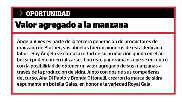 Desde el año pasado, una de las propuestas educativas de la institución es este taller. Allí, unas 20 personas por año se capacitaron, la mayoría para producir y luego comercializar sidra. La idea es que esta bebida no sólo sea consumida para festejar el fin de año, sino ofrecerla como una propuesta más en la mesa.