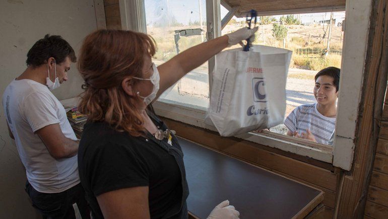 Ayer, a través de una ventana de la humilde vivienda donde funciona La Escuelita, Núñez junto con otras voluntarias con guantes y barbijos entregaron las viandas. “Hemos hablado con cada familia para que se acerquen en distintos momentos del día y evitar que se amontonen”, explica.