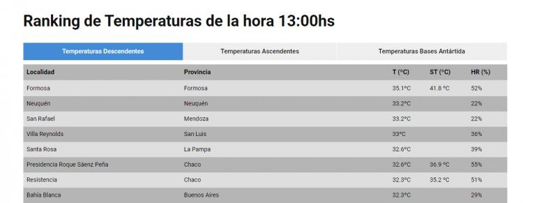 Con esta temperatura, Neuquén estaba en el podio de las ciudades más calurosas del país, por detrás de Formosa.