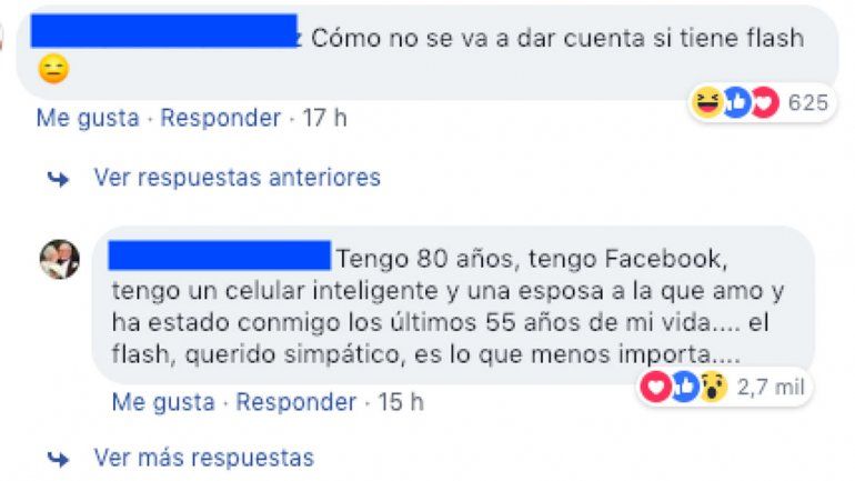 “Tengo 80 años, tengo Facebook, tengo celular inteligente y una esposa a la que amo y ha estado conmigo los últimos 55 años de mi vida … el flash, querido simpático, es lo de menos", respondió el abuelo.