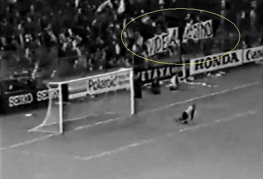 Para el partido frente a Italia en el Olímpico de Roma, el cual sería el más popular de la gira, decidieron enviar un avión con un grupo de barrabravas para que actúen de la misma forma que en el país. Como resultado, consiguieron que durante aquel evento se viera una bandera con un inscripto que poco tenía que ver con la realidad: “Argentina, un país en paz”.