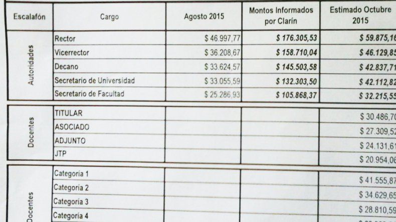 El rector aclaró que los sueldos reales del personal son cerca de un tercio de lo que informaba Clarín. En su caso, la publicación del medio denunciaba que cobraba más de 176 mil pesos cuando en realidad cobraría cerca de 47 mil.