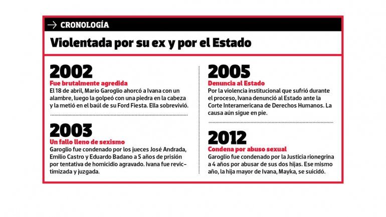 “A mi mamá se le fue la vida esperando una respuesta. Espero que a mí no se me vaya la vida como a ella”, confió Abril en referencia a los múltiples reclamos y deseos que tuvo su mamá durante trece años. En 2003, cuando Garoglio enfrentó el juicio por tentativa de homicidio agravado, el fallo emitido por la Justicia neuquina no hizo más que justificar los golpes recibidos por Ivana, incluida la propia fiscalía.