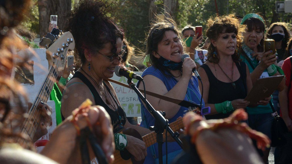 Con bailes, oradoras y arte, las mujeres neuquinas, que están a favor del aborto, viven así la previa.