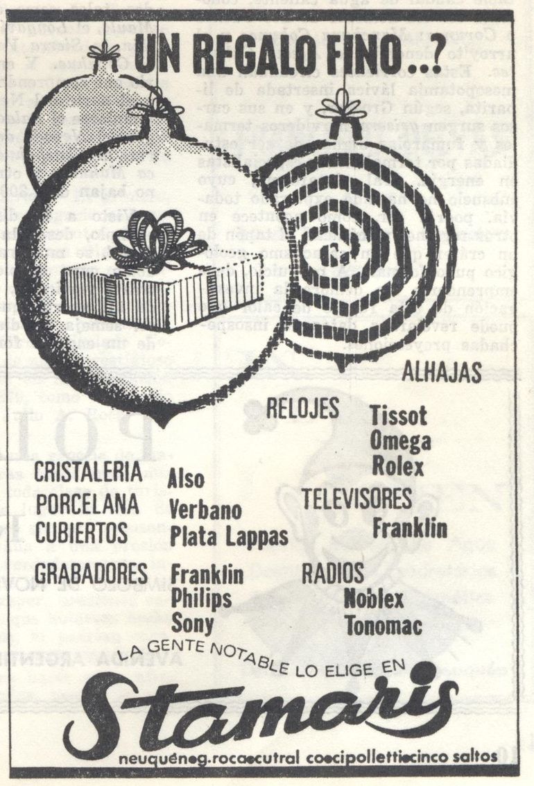 Trabajé con muchas firmas que seguramente la gente recordará: Tienda Buenos Aires, El Sportman, Suixtil, la Aseguradora de Río Negro y Neuquén y muchos más. Muchos venían a nuestra agencia porque todos querían ser Stamaris. Así que es que, tuve que rechazar muchos trabajos porque no podía tomar competitivos de Stamaris.