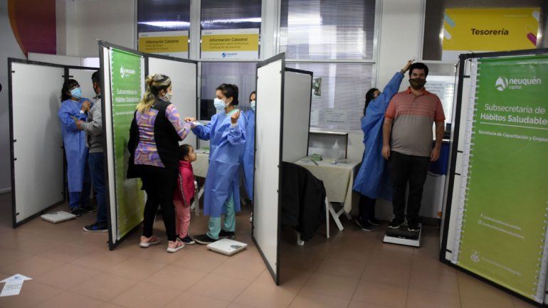 Desde las 10 y hasta las 16, personal del Hospital Castro Rendón realiza la medición de la masa corporal a los vecinos y vecinas que se acercan y si se detecta que es superior a 35 les certifican obesidad grado 2 o 3, según corresponda, por lo que luego pueden acercarse a las jornadas de vacunación espontánea o anotarse en el registro con patologías previas para esperar ser convocados para recibir la vacuna.