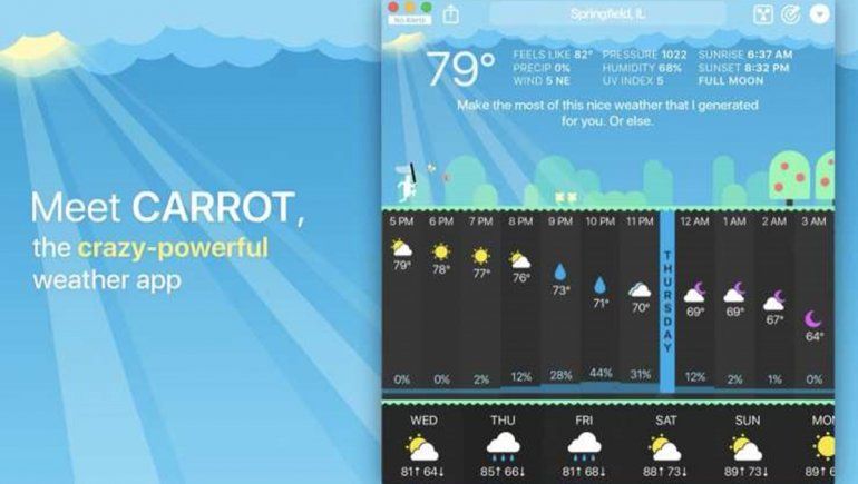 Carrot Weather es una de las aplicaciones para conocer la predicción meteorológica más populares de la App Store. Ahora, gracias a Catalyst, también llega al Mac, donde conserva su peculiar interfaz y la mayor parte de sus prestaciones.