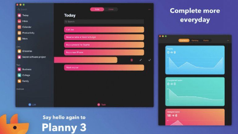 Planny es una app que le recomienda a los usuarios las tareas y a la vez, se las recuerda para que no la olvides. Ganas puntos por tu productividad y por añadir y completar tareas, pero también los puedes perder si las cancelas o las olvidas. Los usuarios, pueden comparar su productividad con amigos durante la semana.