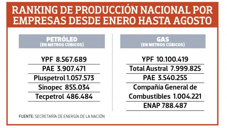 Tres de las cinco áreas que más gas producen en el país y dos de las cinco con mayor extracción de crudo están situadas en Neuquén. Esto se corrobora si se toman en cuenta los promedios diarios de producción en el periodo comprendido desde enero a julio informados por la Secretaría de Energía de la Nación.