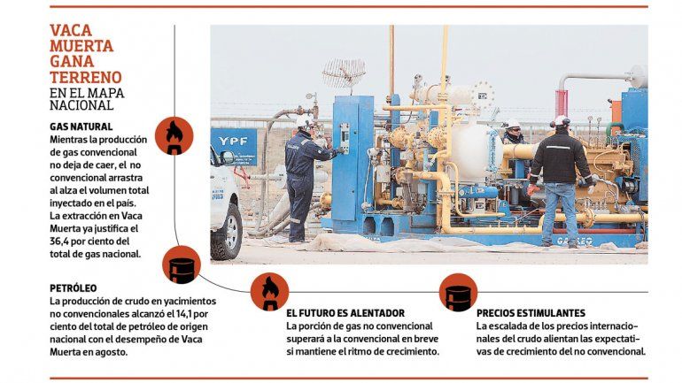 Para meterse en la lista de las mayores productoras de gas del país, Loma La Lata- Sierra Barrosa promedió en los primeros siete meses del año un volumen de 13,784 millones de metros cúbicos por día, poco más de la mitad del registro de la Cuenca Marina Austral.