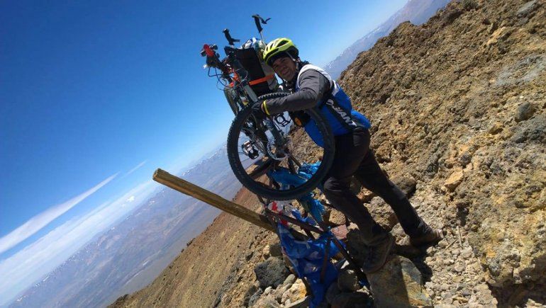 Juan Contreras, en compañía de su amigo Nicolás Gatica, profesor de educación física oriundo de El Cholar, el pasado miércoles 13 de septiembre emprendieron la marcha rumbo al volcán Tromen con el objetivo de cumplir la proeza: subirlo con una bicicleta a cuestas.