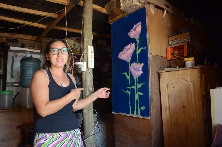 Marisa no paraba de agradecerles a las artistas plásticas el despliegue de colores en las casillas de la toma de Casimiro Gómez. Tiene 43 años y junto a su hijo de 9 fue una de las primeras que se instaló en la toma en febrero del año pasado. “Me vine acá porque no pude pagar más el alquiler de la casa donde vivía en el barrio San Lorenzo”, explicó a LM Neuquén mientras mostraba con felicidad la enredadera que le pintaron en el exterior de su casilla y las flores que ahora lucen en el interior de la misma. “No tenemos agua, por lo tanto no podemos plantar, así que acá nos faltaba color, y que vengan a pintar las casillas nos encantó”, explicó.