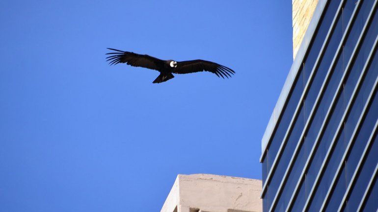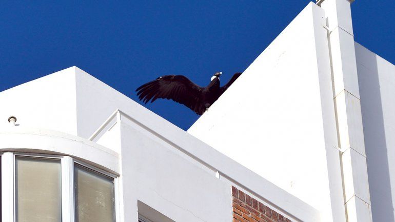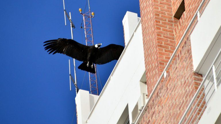 Un cóndor sorprendió durante todo el día a los neuquinos que transitaron este viernes por el centro. El animal llegó hasta un edificio ubicado en Santiago del Estero y Carlos H. Rodríguez y, desde temprano, llamó la atención de miles de vecinos.