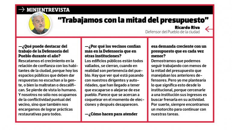 El defensor del Pueblo, Ricardo Riva, difundió los datos ayer durante su informe anual ante el Concejo Deliberante. Remarcó que trabaja cada vez más: en relación con el año pasado, la actividad se incrementó un 9 por ciento.