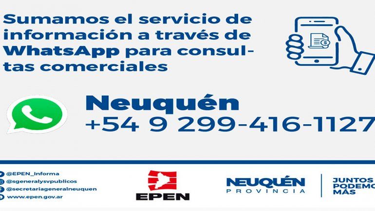 Desde hace unos días, funciona un número de atención al cliente a través de mensajería por WhattsApp que permite obtener información sobre trámites comerciales y consultas de pago.