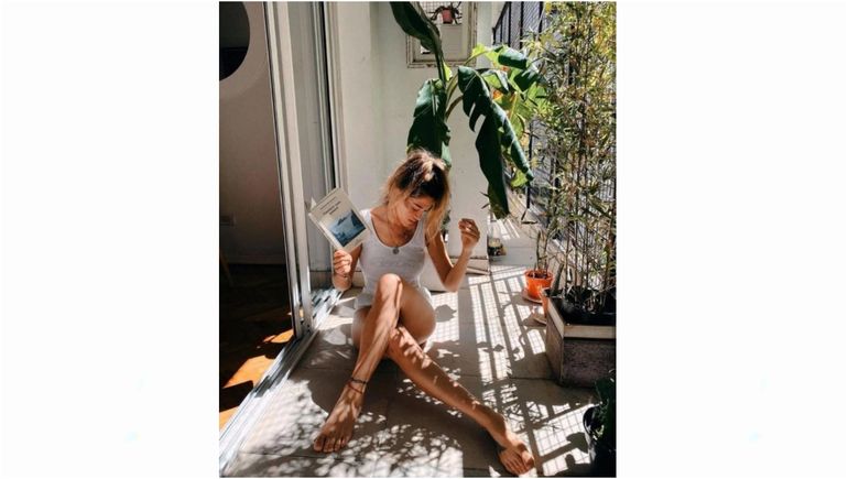 A falta de patio, Jimena Barón tiene a su disposición un coqueto balcón, bañado del sol por las mañanas. Este además, está cubierto de plantas para darle un tinte más verdoso, además de sumarle fresco al siempre caliente clima veraniego porteño.