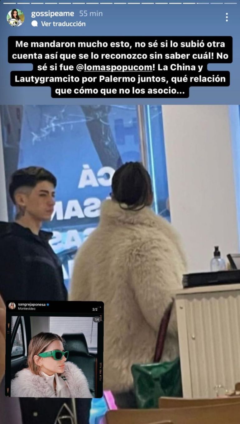 Para sumar pistas, Pochi agregó en la parte inferior de la storie, una selfie de sangre japonesa llevando el mismo abrigo, dejando en evidencia que se trata de la modelo: ‘’La China y Lautygramcito por Palermo juntos’’ reveló.