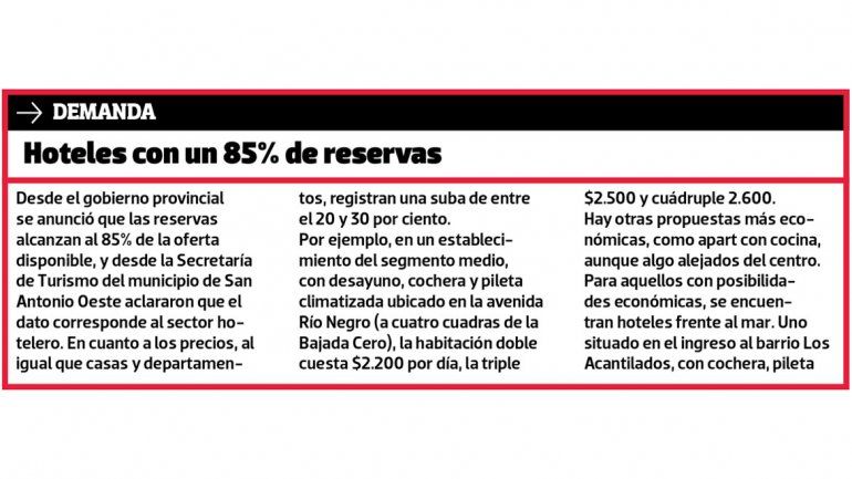 Los propietarios han observado un aumento en las reservas en las últimas semanas que, a diferencias de otros años, no son por tres o cuatro días, sino de entre siete y diez. Otro detalle es la cantidad de consultas, las que se han incrementado en un 50 por ciento con respecto a otros veranos. “Eso nos marca una pauta de lo que puede suceder”, destacó Rivas.