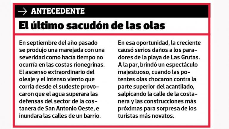Si las ráfagas son intensas y del sur o sudeste, el agua podría avanzar más de lo previsto. Hay sectores donde el riesgo es mayor, como en Piedras Coloradas. Los visitantes acostumbran a dejar sus vehículos en una hondonada que está rodeada de paradores y comercios. Pero el mar comienza a filtrarse por un desnivel de la playa y llega hasta el estacionamiento. Los comerciantes acostumbran a alertar a los turistas, ya que no hay cartelería informativa al respecto.